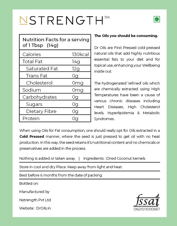 Dr. Oils Cold-Pressed Coconut Oil is a premium, pure, and nutrient-rich oil carefully extracted from fresh coconuts at low temperatures to preserve its natural goodness. With a smooth, delicate flavor and aroma, it’s perfect for cooking, baking, and enhancing your daily wellness routine. Rich in healthy fats and nourishing vitamins, Dr. Oils Cold-Pressed Coconut Oil supports both culinary creativity and holistic health, making it an essential pantry staple for the modern kitchen.